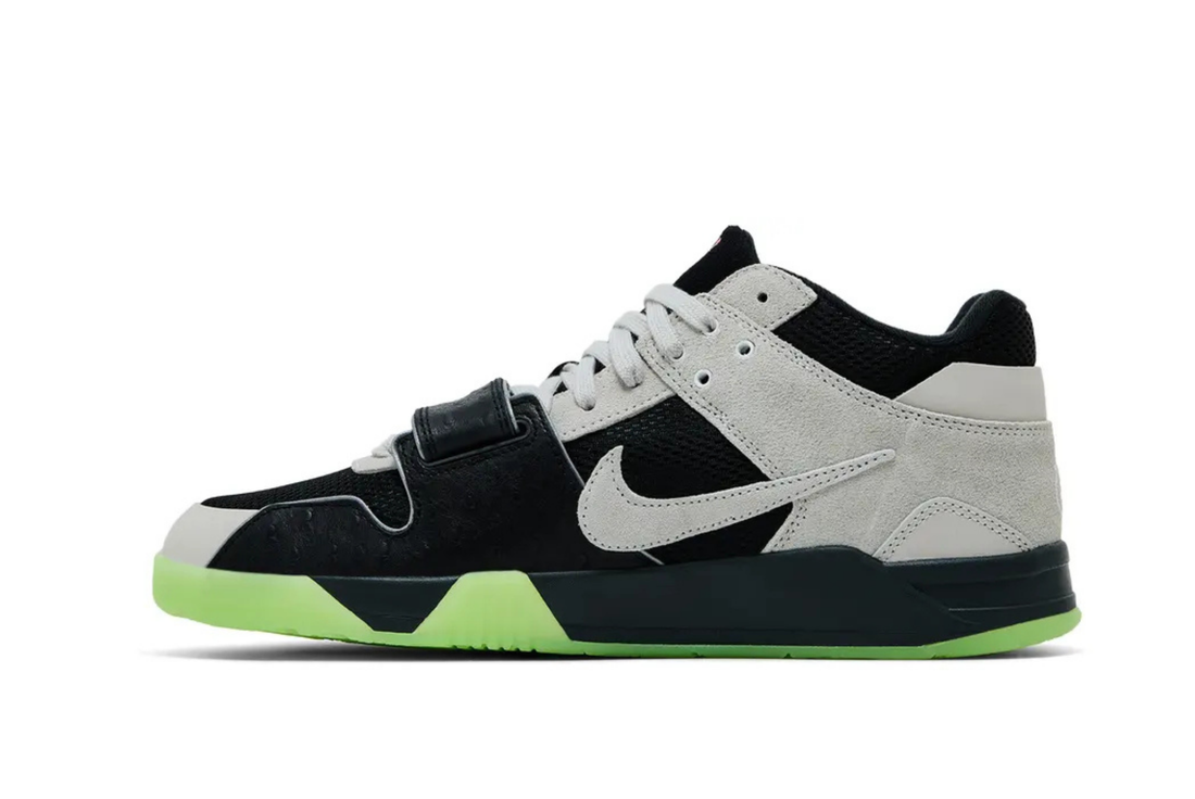 The Chase B x Travis Scott x Jordan Jumpman Jack TR 'Black Night Silver' utilizes...