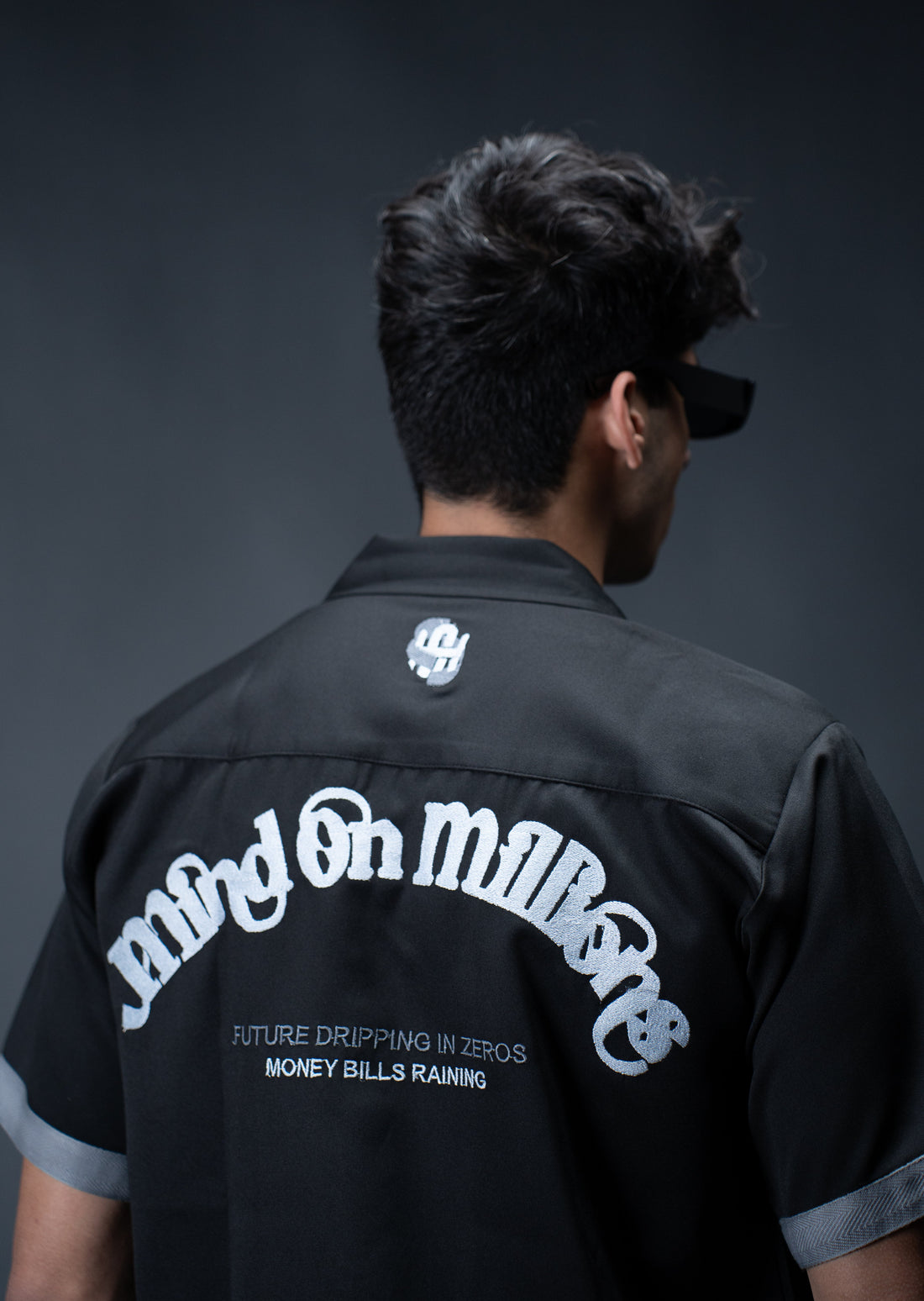 • COTTON TWILL• ROOTED GRAPHIC PRINT• OPEN COLLAR WITH BUTTON DOWN FRONT• RELAXED BOXY FIT•...