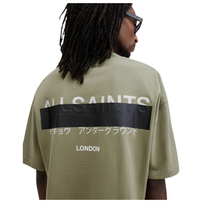 All Saints Redact Oversized Embroidered Logo T-Shirt 'Eden Green'