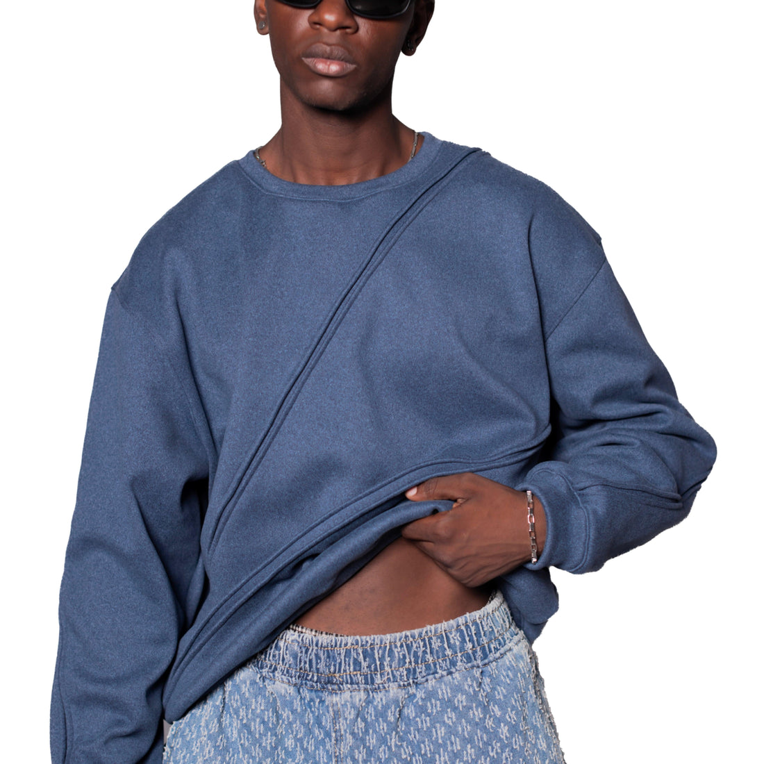 Introducing the Reconstructed Sweatshirt in Denim Blue; a carefully crafted garment designed to blend the...