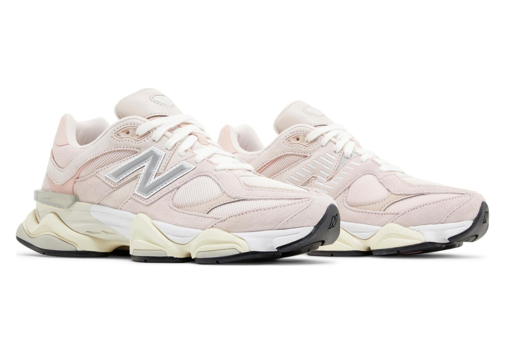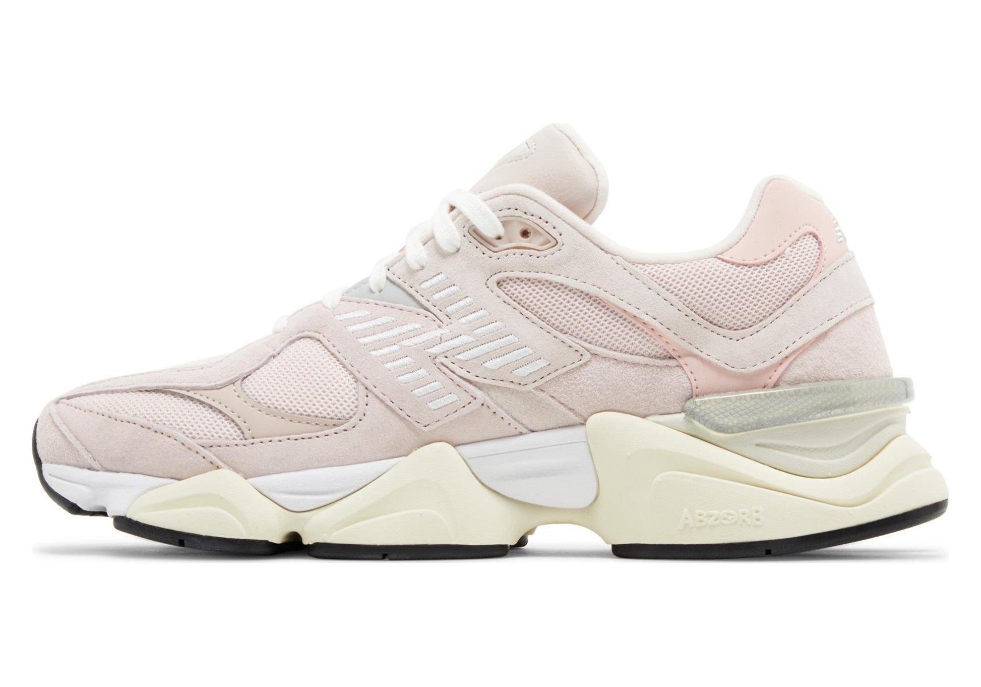 Buy 9060 'Pink Haze' in India from copyourdrip.com, The New Balance 9060 ‘Pink Haze’ brings a delicate pastel finish to a lifestyle runner that blends elements from the venerable 99X series. The upper combines breathable pink mesh with tonal suede overlays and a silver ‘N’ logo on the lateral side. Atop the tongue, an NB 9060 badge takes inspiration from the original 991 lace jewel. A translucent CR device at the heel provides rearfoot stability, while a stacked ABZORB midsole yields lightweight cushioning.