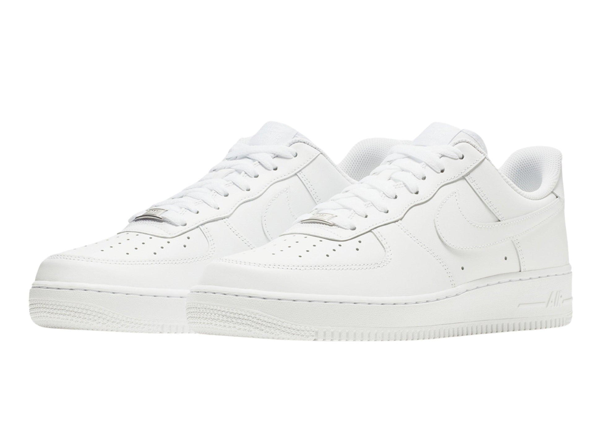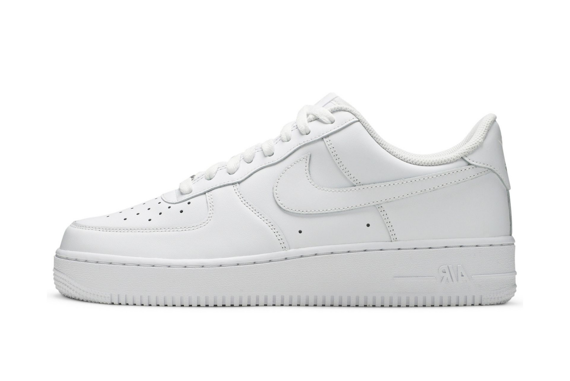 Buy Air Force 1 '07 'Triple White' in India from copyourdrip.com , The Nike Air Force 1 ‘07 ‘Triple White’ gives the classic silhouette a blank-slate makeover, one that accentuates the shoe’s classic lines. Built with white leather, the upper is appointed with heritage details, including a perforated toe box, variable width lacing, and metallic silver lace dubrae. A matching white rubber cupsole packs an Air-sole heel unit encapsulated in lightweight foam. Underfoot, the rubber outsole features the original pivot-point traction pattern.