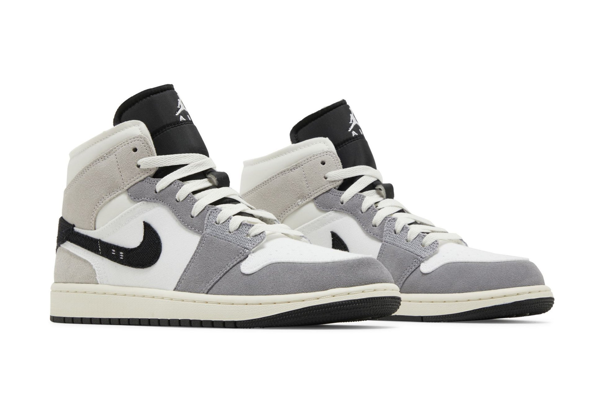 The Jordan 1 Mid SE Craft White Cement Gray Black combines subtly different colors, textures, and fabrics to lend singular elegance to a classic silhouette.