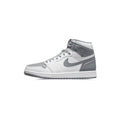 Buy Air Jordan 1 Retro High OG 'Stealth' in India from copyourdrip.com , The Air Jordan 1 Retro High OG ‘Stealth’ applies an understated two-tone finish to the sneaker that started it all. The all-leather build pairs a stark white base with neutral grey accents on the perforated toe box, signature Swoosh, and heel and collar overlay. The latter is branded with a retro Wings logo, while a woven Nike Air tag graces the breathable nylon tongue. The high-top rests on a rubber cupsole with an encapsulated Air-sole unit in the heel for lightweight cushioning.