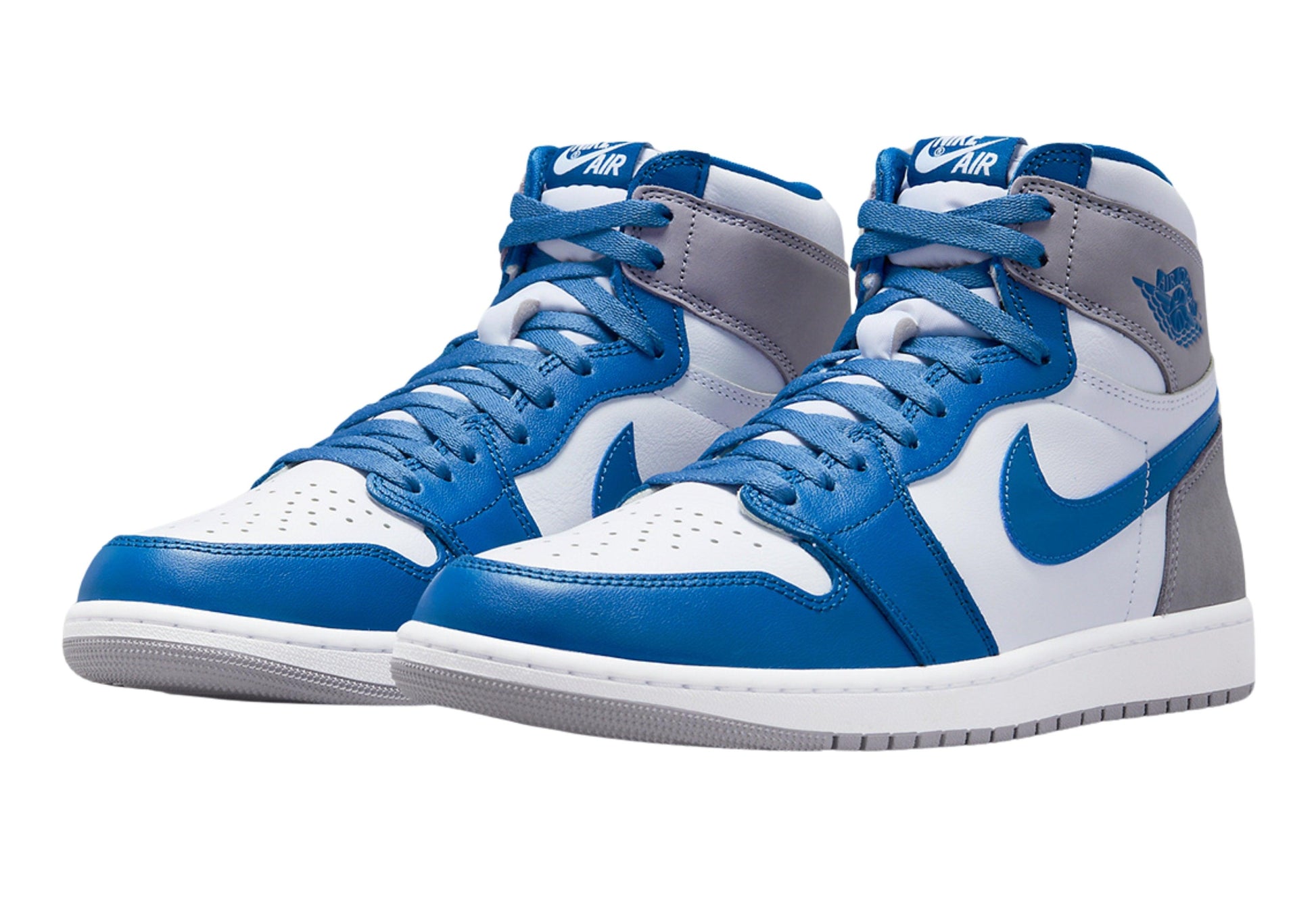 Buy Air Jordan 1 Retro High OG 'True Blue in India from copyourdrip.com , The Air Jordan 1 Retro High OG ‘True Blue’ dresses the timeless silhouette in familiar hues borrowed from an OG colorway of the Air Jordan 3. The smooth leather upper combines a crisp white base with contrasting hits of True Blue on the forefoot overlay, Swoosh, and eyestay. A neutral Cement Grey finish is applied to the heel and collar overlay, featuring a retro Wings logo stamped in blue. A woven Nike Air tongue tag completes the OG-inspired aesthetic. Lightweight cushioning is provided by an encapsulated Air-sole unit nestled in the heel of the rubber cupsole.