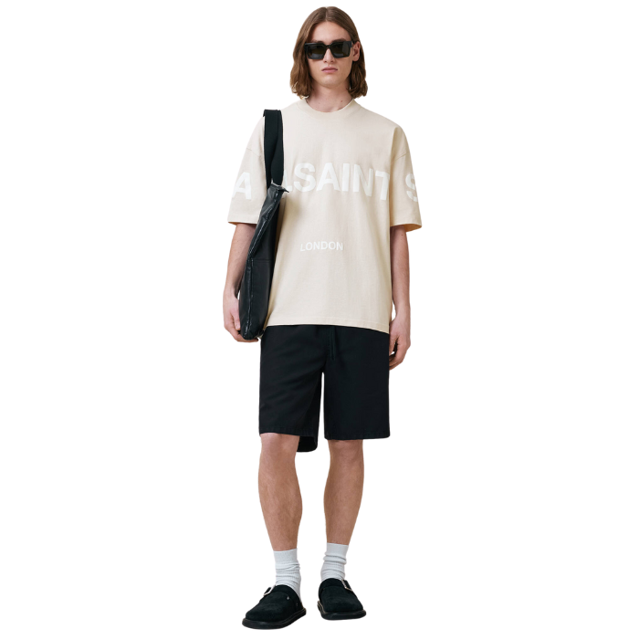 All Saints Biggy Oversized Logo Print T-Shirt 'Bailey Taupe'