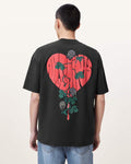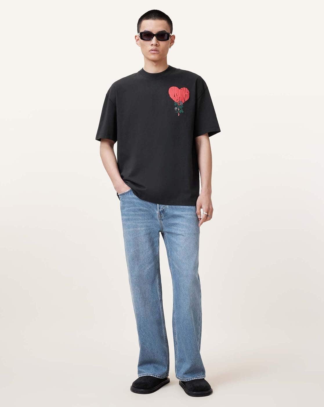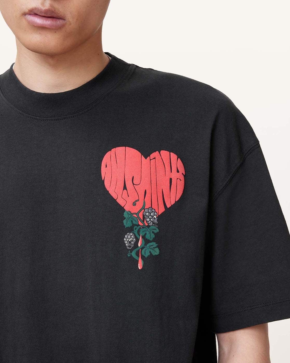 All Saints Men Sown Print Oversized Crew-Neck Organic Cotton T-Shirt 'Washed Black'