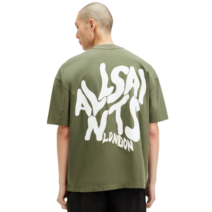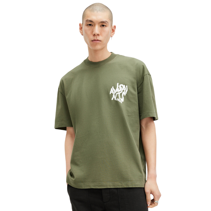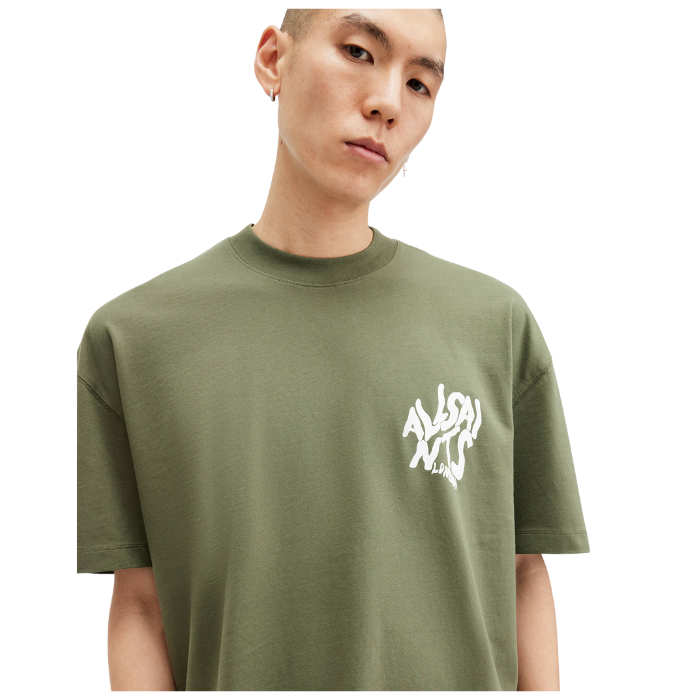 All Saints Orlando Logo Print Oversized T-Shirt 'Fleur Green'