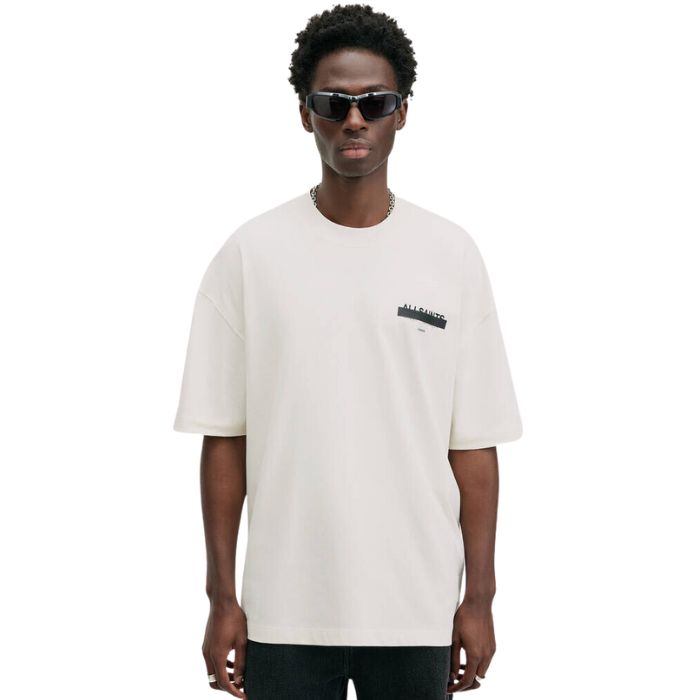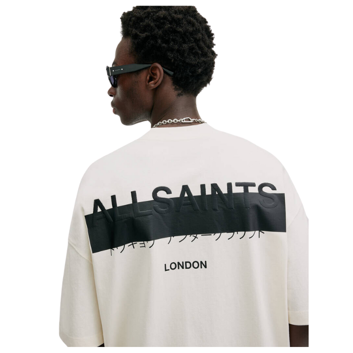All Saints Redact Oversized Embroidered Logo T-Shirt 'Ashen White'