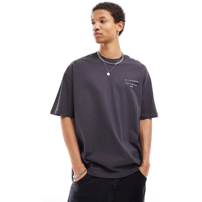 All Saints Redact Oversized Embroidered Logo T-Shirt 'Washed Black'