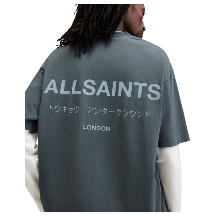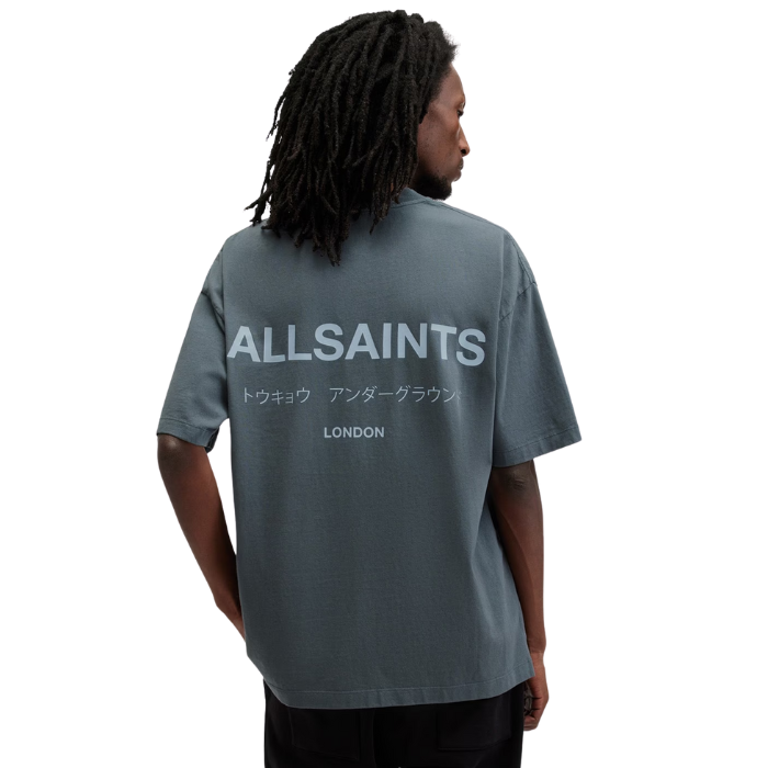 All Saints Underground Logo Oversized Fit Crew-Neck T-Shirt 'Ashy Blue'
