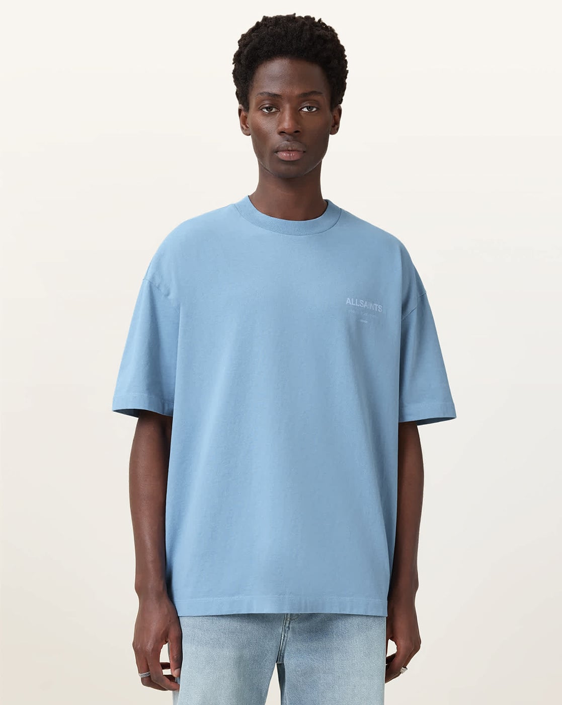 All Saints Underground Logo Print Oversized Crew-Neck T-Shirt 'bondi-blue'