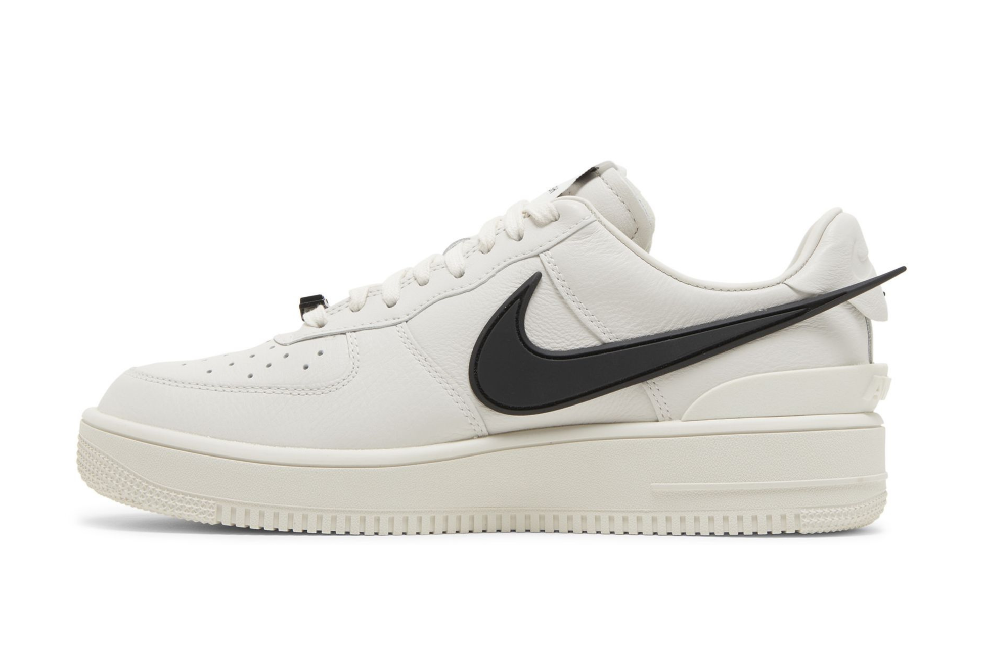Buy AMBUSH x Air Force 1 Low 'Phantom' in India from copyourdrip.com, The AMBUSH x Nike Air Force 1 Low ‘Phantom’ pairs exaggerated details with an essential two-tone palette. Designer Yoon Ahn dresses the low-top in an off-white leather upper, accented with an enlarged signature Swoosh in black TPU. A dual-branded woven tag sits atop a breathable nylon tongue, while ‘AMBUSH’ adorns the external heel counter in embossed block lettering. Underpinning the sneaker is a durable rubber cupsole in a solid white finish.