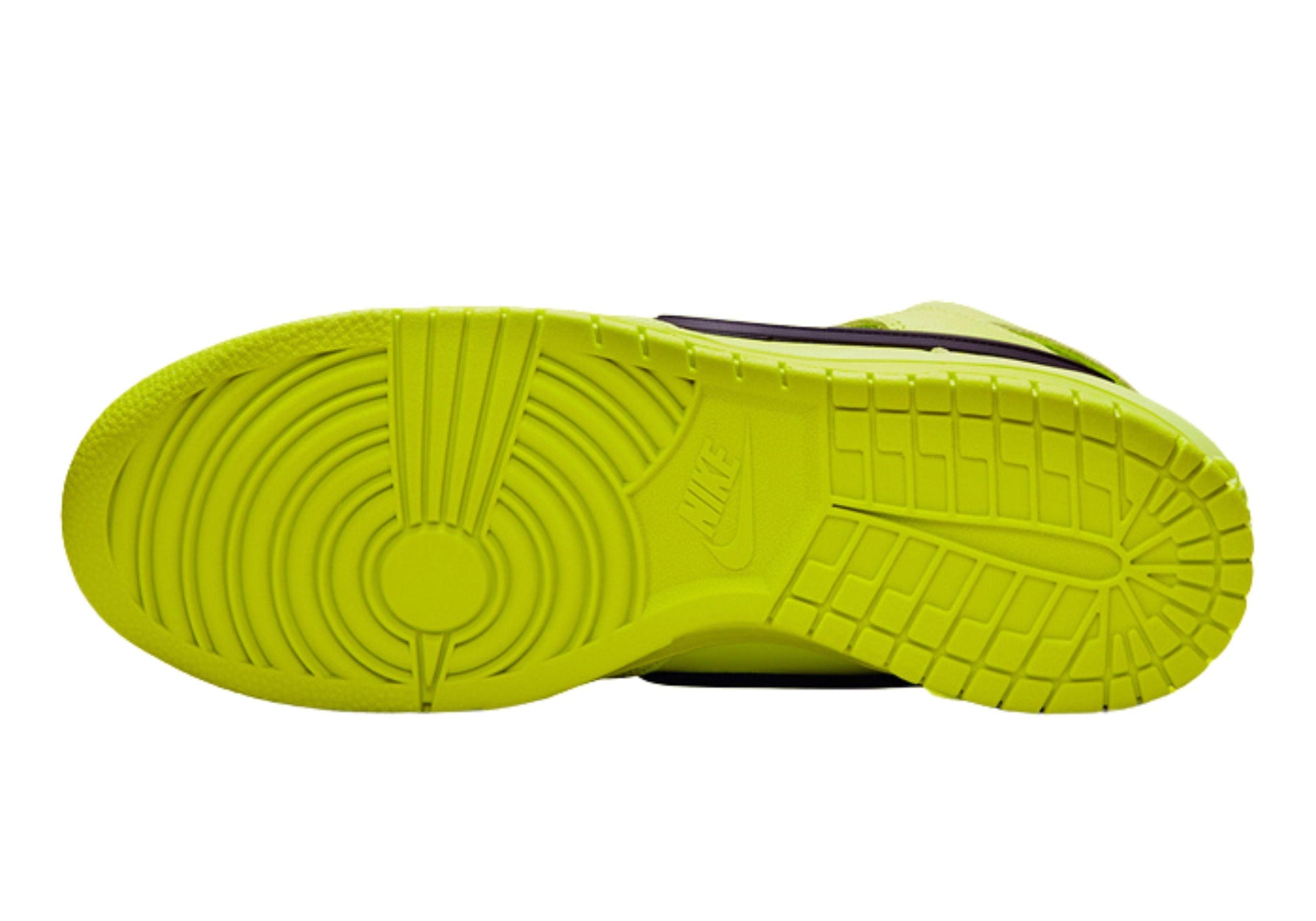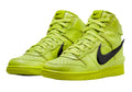 Buy AMBUSH x Dunk High 'Flash Lime' in India from copyourdrip.com, The AMBUSH x Nike Dunk High ‘Flash Lime’ brings Yoon Ahn’s distinct design vision to a fourth collaborative colorway of the retro hoops shoe. Inspired by Tokyo’s bright lights, the sneaker is entirely dipped in a fluorescent green hue, save for the co-branded tongue tag and a black TPU Swoosh that sweeps past the heel — a unique detail that recalls the look of motorcycle exhaust pipes. The leather upper is updated with an exposed foam tongue, a reconstructed collar, and an external heel clip marked with embossed Ambush branding. A standard rubber cupsole in a matching green finish anchors the high-top silhouette.