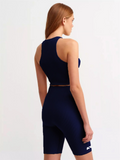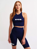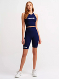 Bike Shorts With Crop Top Set Navy -AYCS