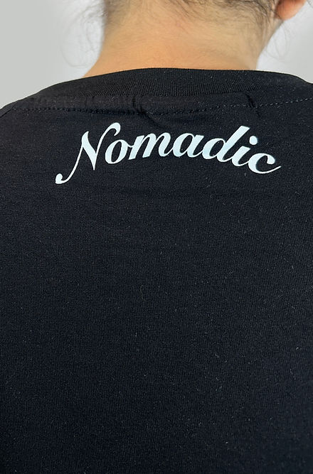 This black beauty, crafted from light, crisp taiwanese cotton, boasts an awesome fit. Across the front, a mesmerizing high-density butterfly print takes flight, adding a touch of whimsical charm. The back features a subtle Nomadic logo, completing the look.