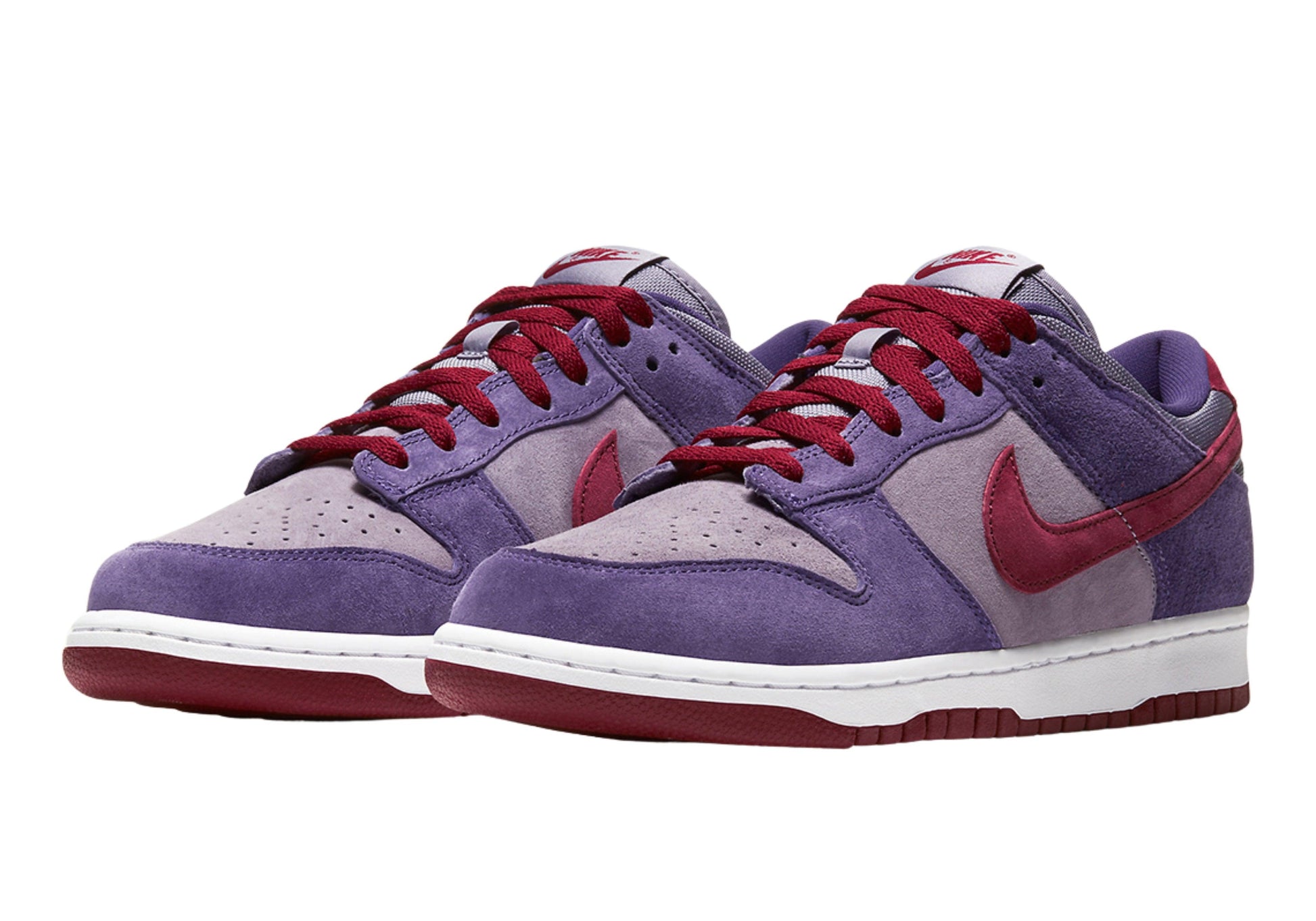 Buy Dunk Low Retro Vol. 1 SP 'Plum' in India from copyourdrip.com, The 2020 reissue of the Dunk Low Retro Vol. 1 SP 'Plum' brings back a classic colorway first released in 2001 as part of Nike’s Japan-exclusive co.jp series. Like the original, this pair features a two-tone purple finish on a buttery all-suede upper, with contrasting hits of dark red on the Swoosh, heel tab and laces. The low-top rides on a white foam midsole, supported underfoot by a red rubber outsole.