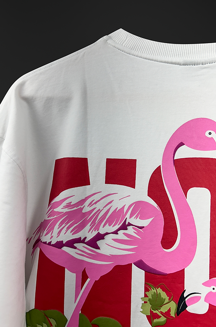 This classic white tee features a clean collar for a polished look. But on the back, a high-density print showcases a sexy flamingo, a symbol of confidence. Made with ultra-soft, breathable 250 GSM Taiwanese cotton, this tee is as comfy as it is stylish.