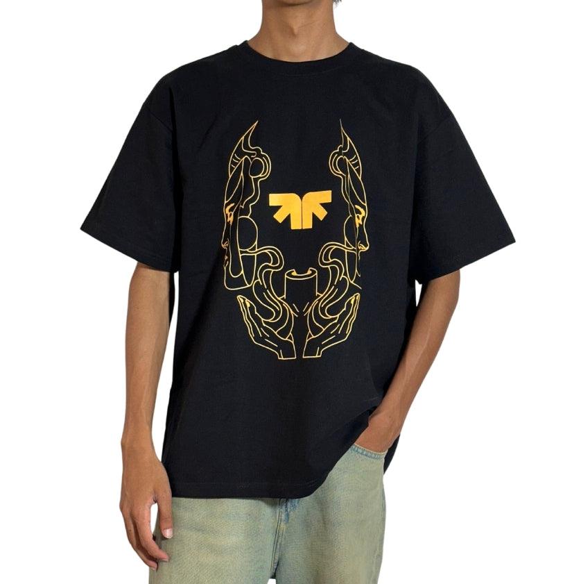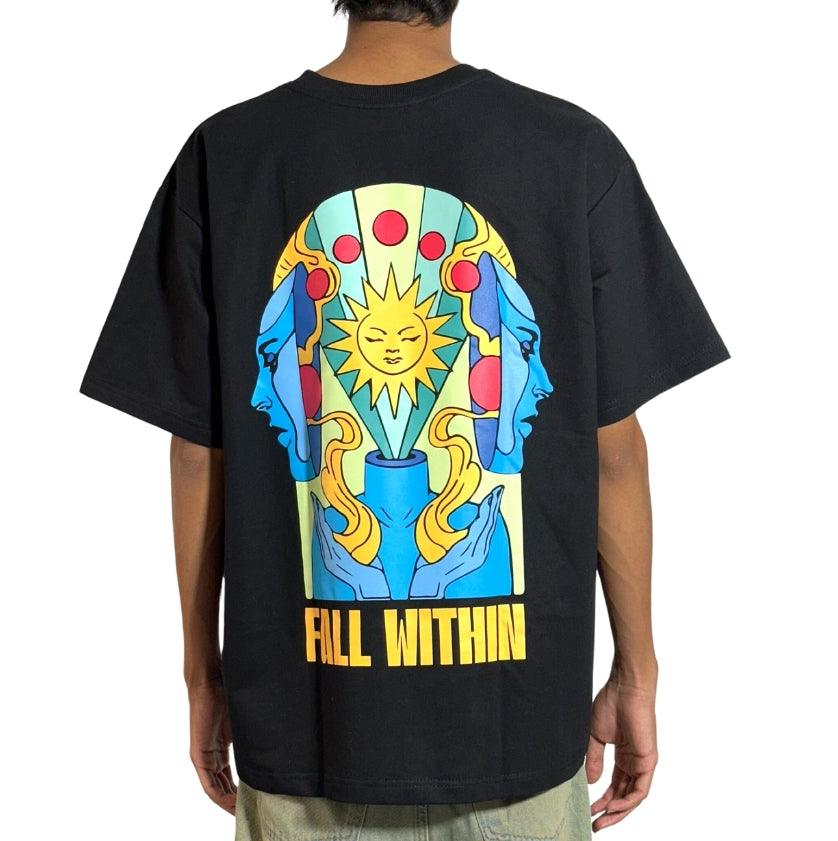 The back of the tee takes the narrative further with a graphic-heavy depiction of two heads splitting from the same body. This powerful imagery, accompanied by the phrase "Fall Within" below, speaks to the inner journey of self-discovery and the exploration of one's true self. The intricate screen print ensures each detail stands out, creating a visual masterpiece that resonates with those who appreciate profound design.