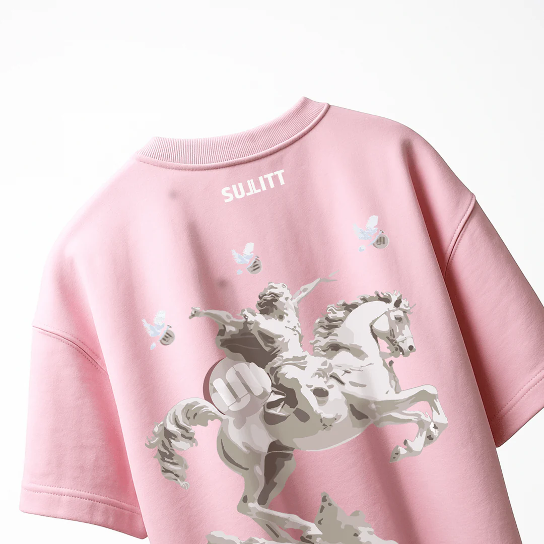 Unleash your bold and mystical side with the HORSE PINK OVERSIZED T-SHIRT Featuring a captivating unicorn backprint that symbolizes strength and magic, this tee is designed to make a statement. Made from high-quality 100% cotton French terry fabric, it offers unmatched comfort and durability.