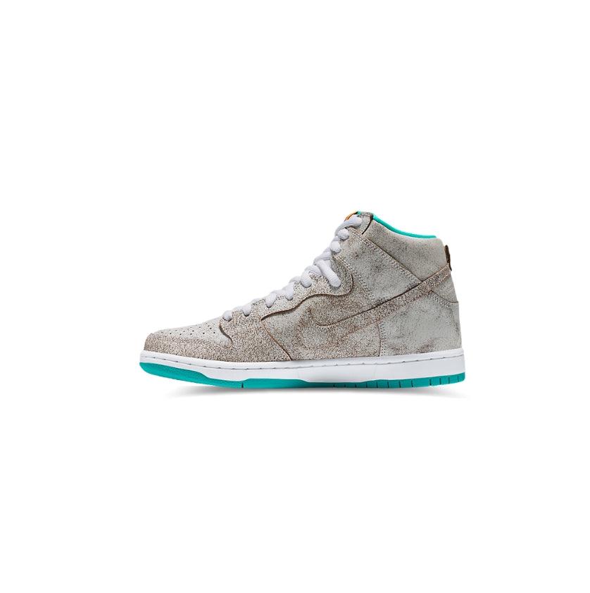 The upper of the 'Flamingo' edition of the Dunk High Premium SB is finished with a grey cracked-earth effect, the design sitting in stark contrast to the Hyper Jade touches on the outsole and inner lining. The insole reveals the inspiration for the shoe’s name, sporting a cartoon flamingo graphic. Keeping skate performance in mind, the shoe includes Zoom Air cushioning in the midsole and a padded collar.