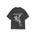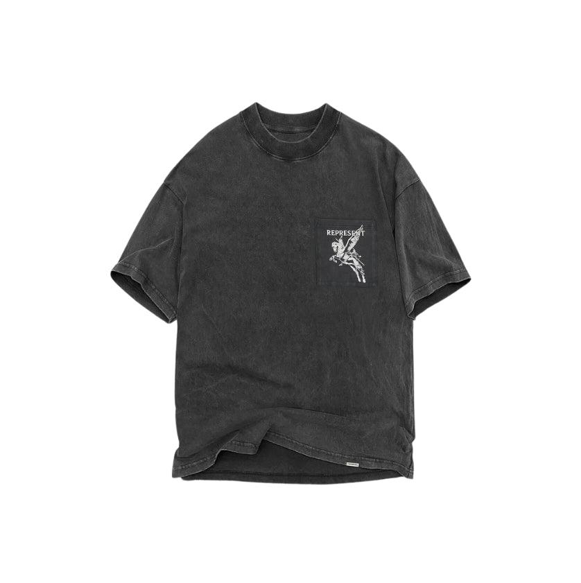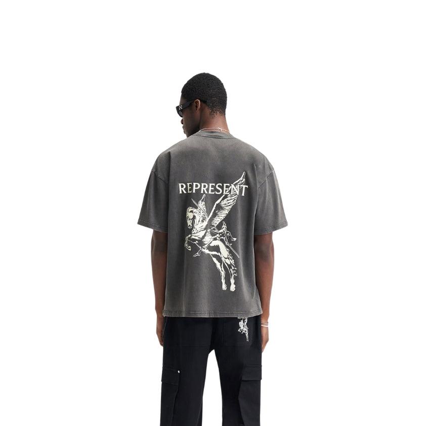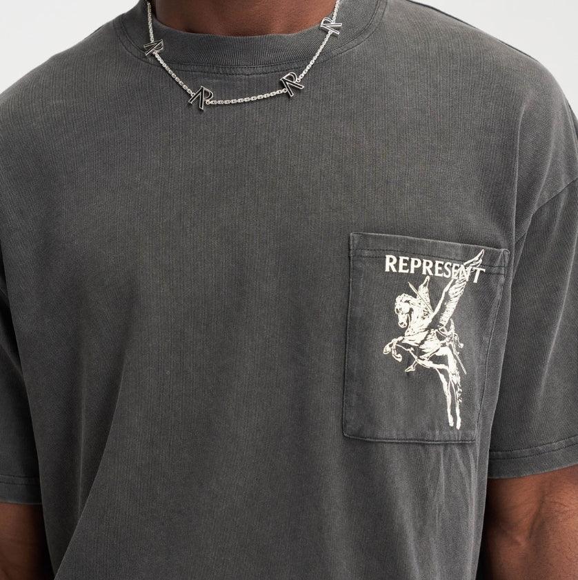 The Mascot T-Shirt in Vintage Grey is crafted from luxury medium weight cotton, with a slightly oversized fit. It features our tonal puff detailed Bellerophon graphic to the front pocket and to the back of the tee, with a Represent metal bar to the hem.
