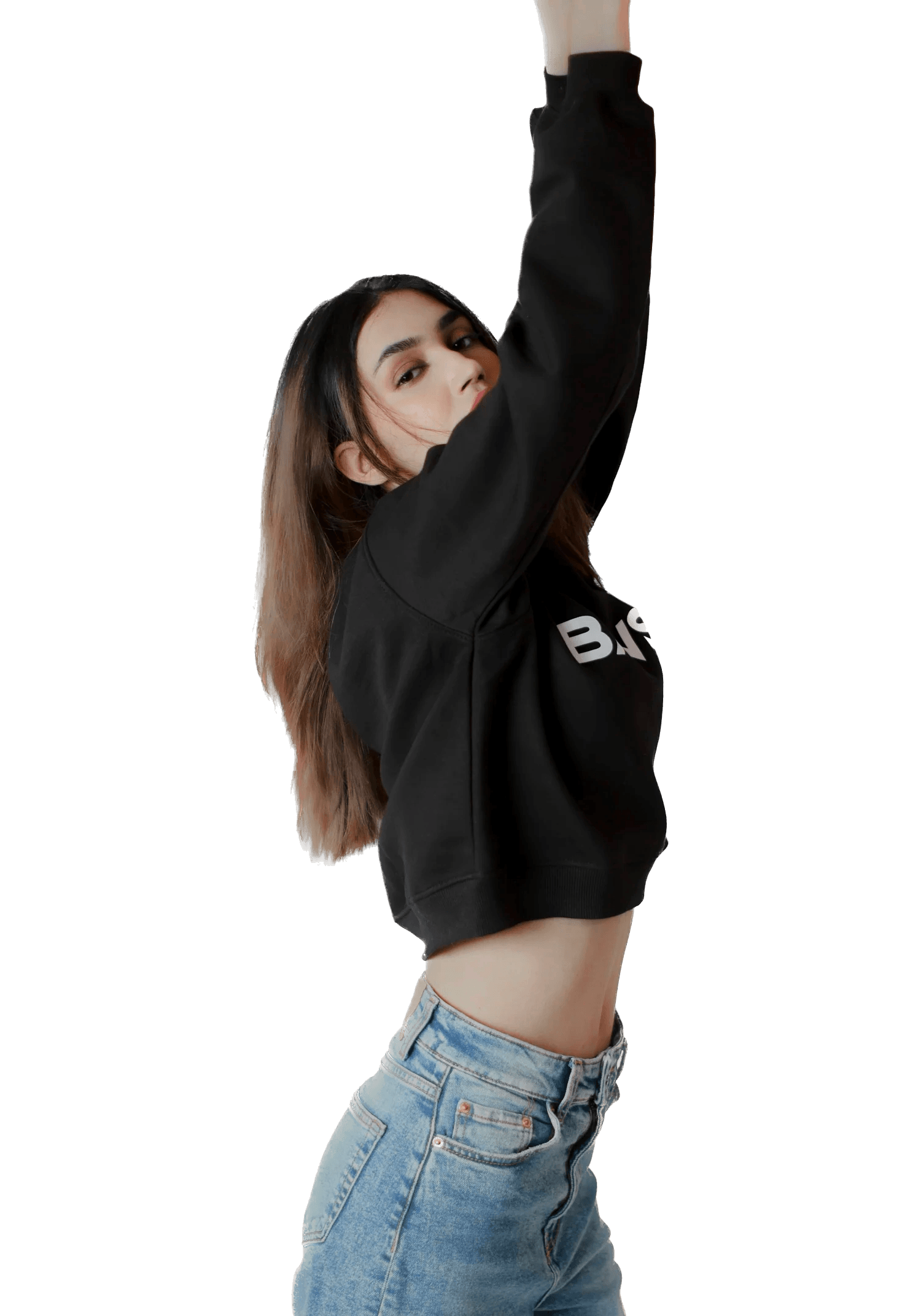 Cropped sweatshirt designed to give that comfy, boxy yet chic look. Ideal to pair up with any joggers, trackpants or shorts.