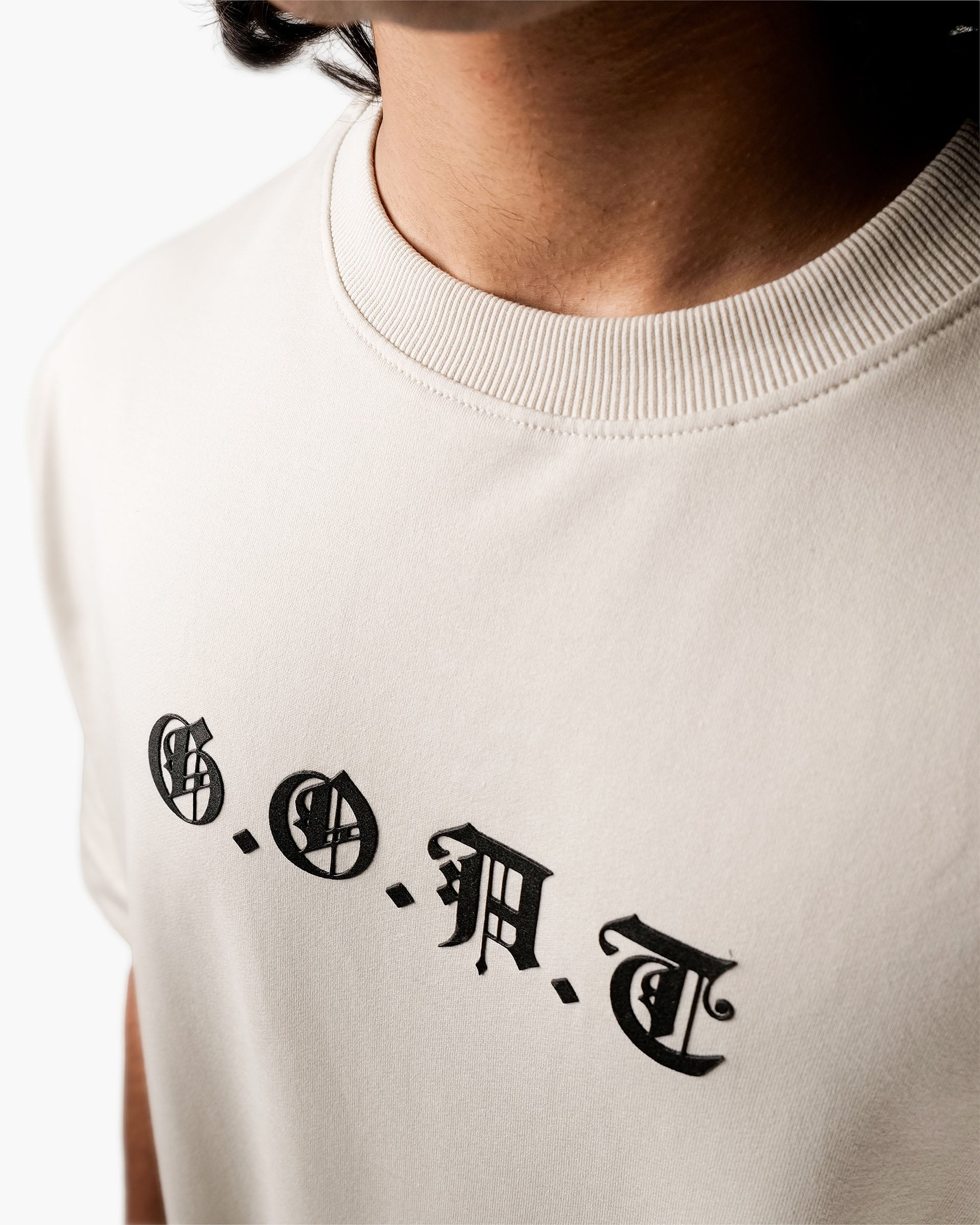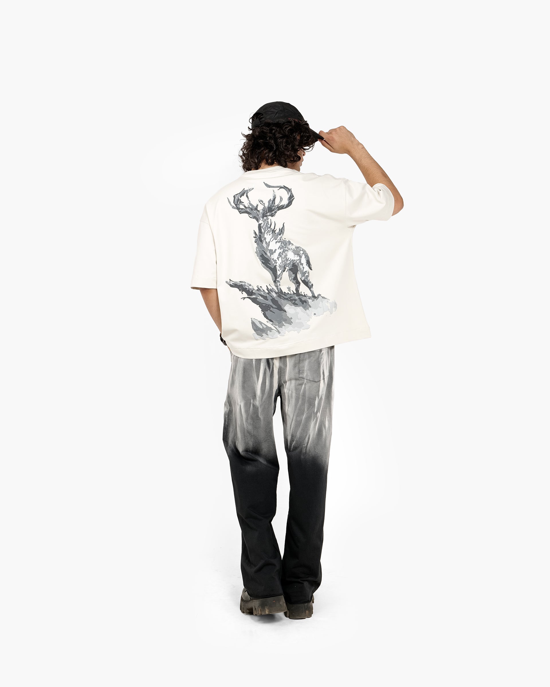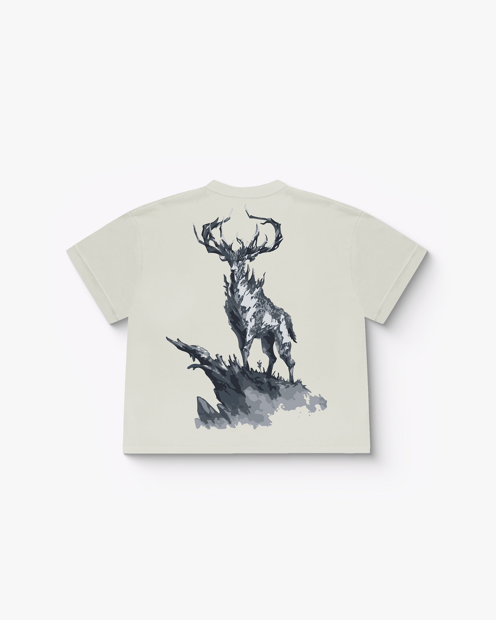 Crafted for the bold, The Summit G.O.A.T. is a premium oversized T-shirt that symbolizes dominance, grace, and quiet power. Featuring a washed ivory canvas, the front boasts “G.O.A.T” in gothic serif lettering, while the back showcases a majestic monochrome stag standing high on a cliff — an embodiment of strength, vision, and strong mindset.