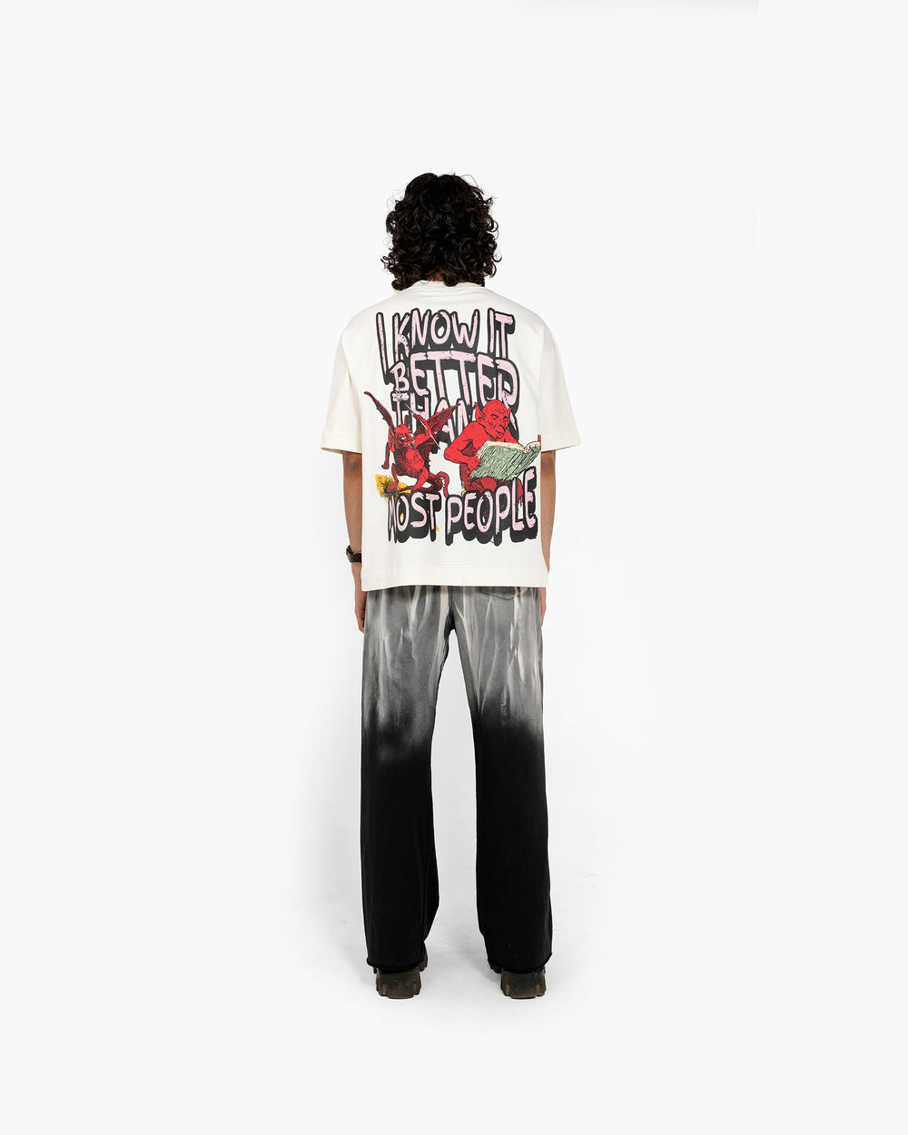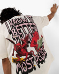 Stand out with the unapologetically bold “Told You!” oversized t-shirt, crafted from premium Cotton Spandex Terry Looper. Featuring a vibrant puff screen print of cheeky red devils and the statement “I KNOW IT BETTER THAN MOST PEOPLE,” this heavyweight 260 GSM tee blends attitude with comfort. Finished with double silicone washing for a buttery-soft feel and a killer fall.