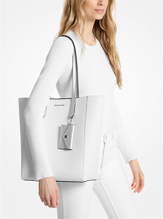 Vincent Large Signature Logo Tote Bag With Card Case 'Silver'