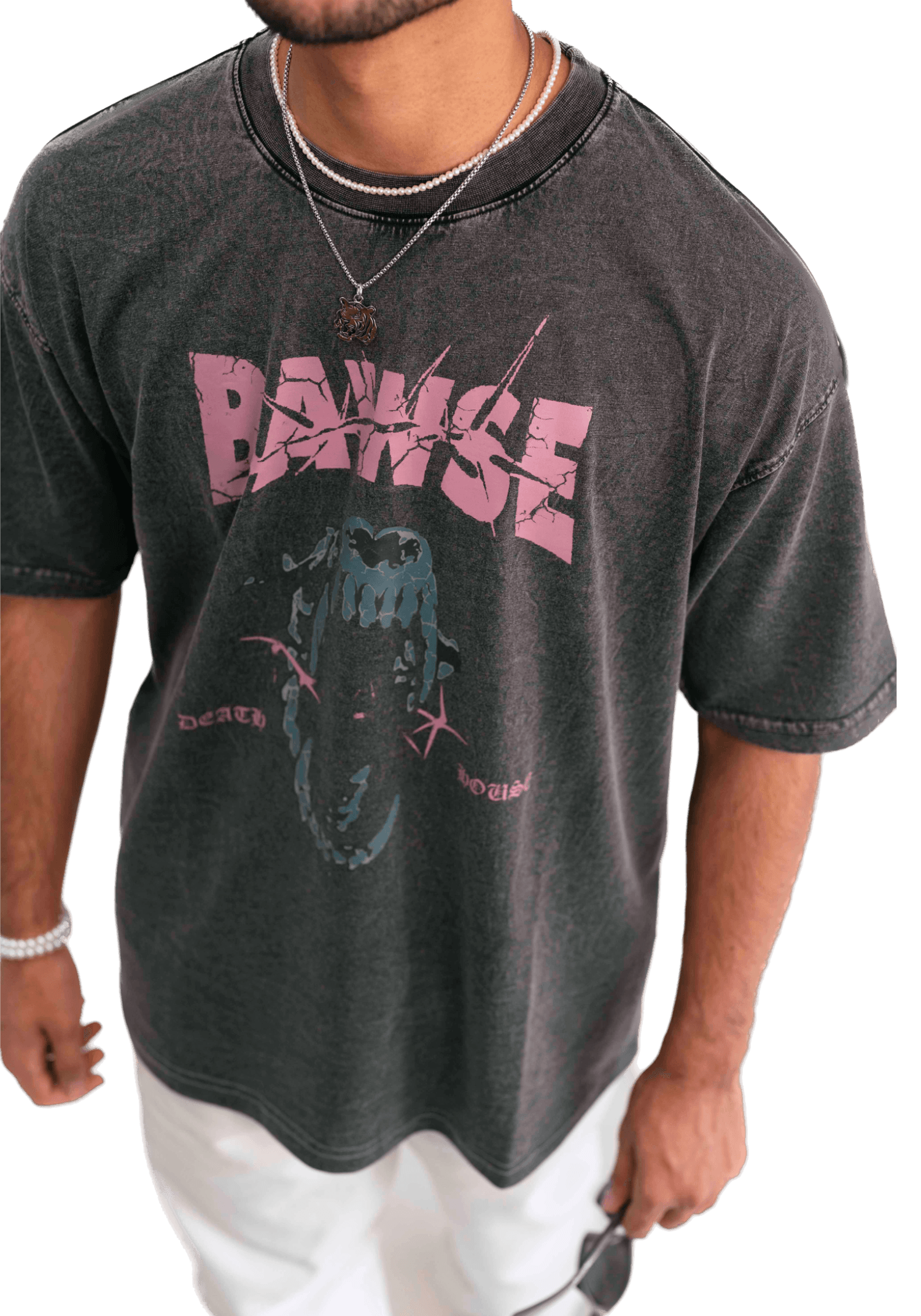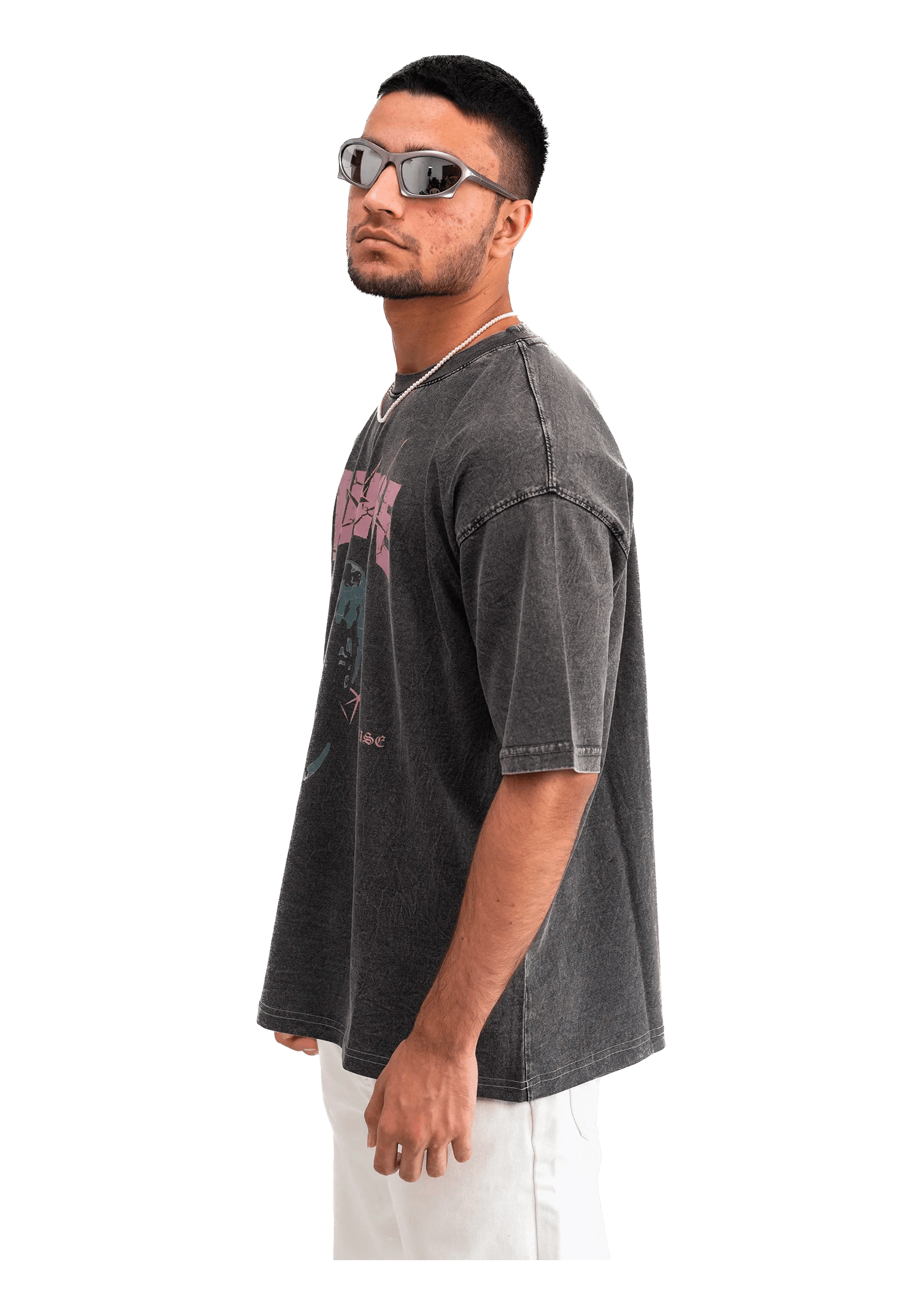 Introducing our Acid Washed Gray T-Shirt crafted from premium quality cotton, this t-shirt boasts a unique vintage wash finish that gives it a perfectly worn-in look and a luxuriously soft feel against the skin. Inspired by 90's graphic vintage tee shirts, the in-house designed graphics pay homage to iconic elements from bygone eras, such as retro typography, distressed patterns and motifs designed to create an authentic vintage appeal. Pair them with our Utility shorts or black pants for a full 90's look.