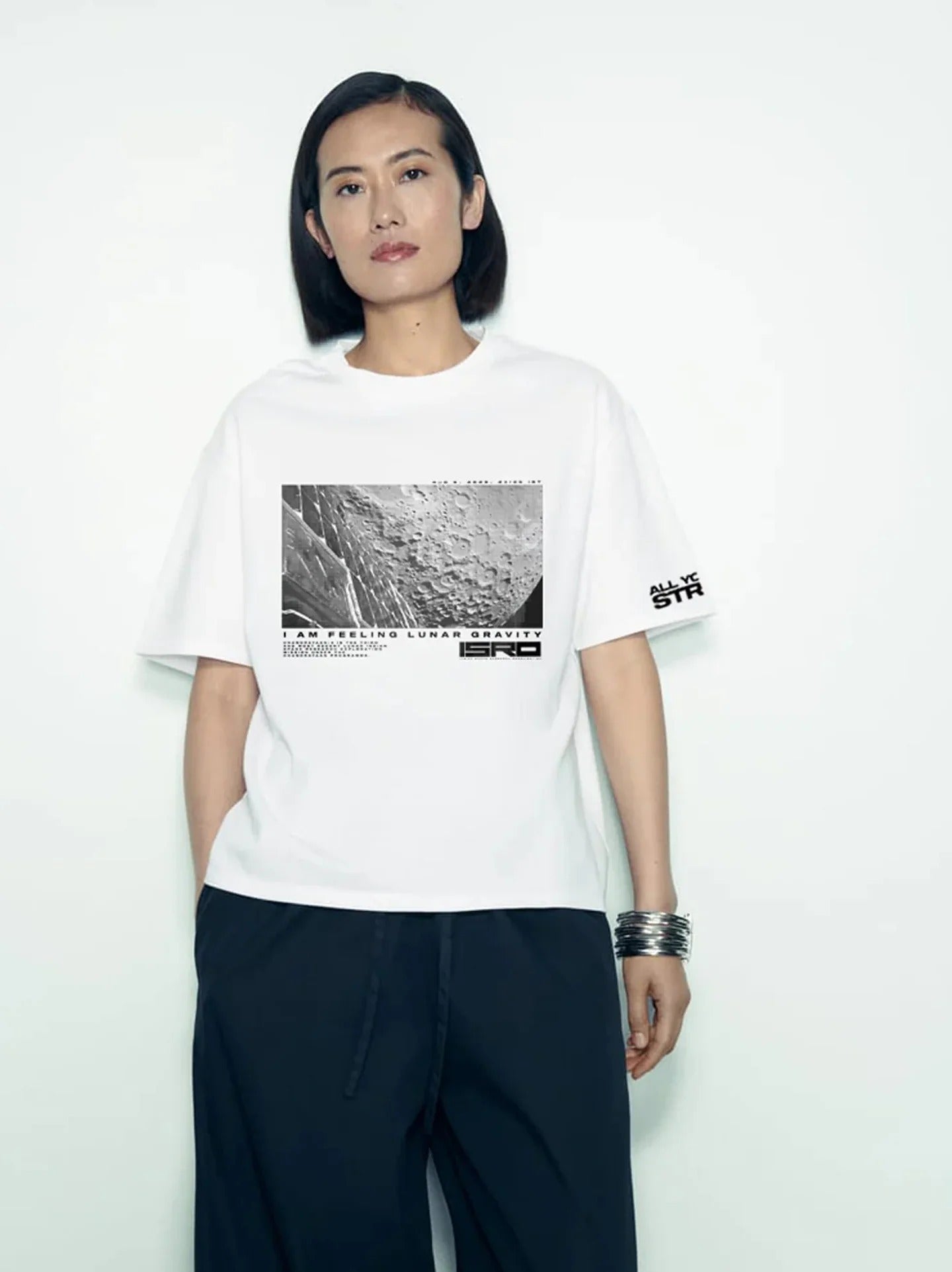 White Chandrayan 3 Lunar Gravity Oversized T-shirt- AYCS