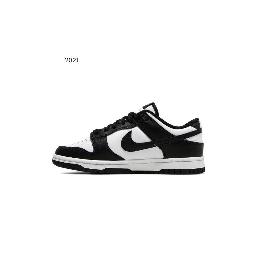 The Nike women’s Dunk Low ‘Black White’ also known as ‘Panda’ highlights classic color blocking on a vintage silhouette originally released in 1985. The all-leather upper features a crisp white base with contrasting black overlays and a matching black Swoosh. Nike branding lands on the heel tab and woven tongue tag in keeping with the sneaker’s OG aesthetic. The low-top is supported by a durable rubber cupsole, equipped underfoot with a basketball-specific traction pattern.