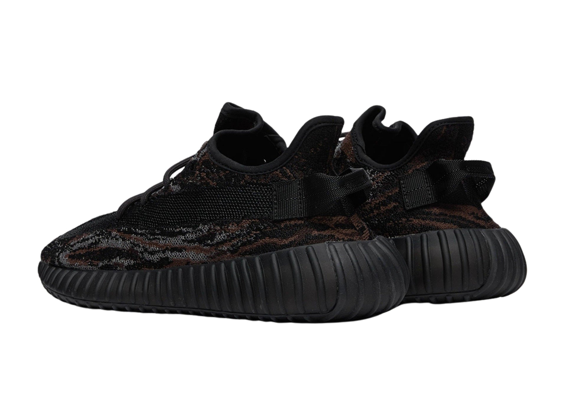Buy Yeezy Boost 350 V2 'MX Rock' in India from copyourdrip.com , The adidas Yeezy Boost 350 V2 ‘MX Rock’ showcases sedimentary streaks of brown and grey throughout a breathable Primeknit upper in a dark charcoal finish. The sock-like build is equipped with traditional lace closure and a webbing pull tab affixed to the heel. Cutting across the sneaker’s lateral side, a post-dyed monofilament stripe offers improved breathability. Lightweight cushioning comes courtesy of a fully caged Boost midsole, visible through cutaway detailing in the rubber outsole.